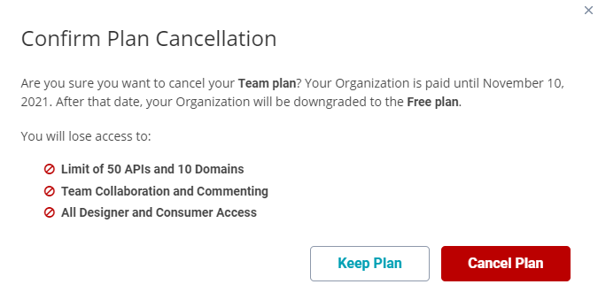 Organization owners can downgrade the organization to the free plan at any time.