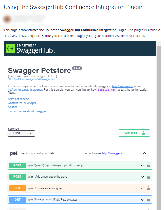The SwaggerHub Integration for Confluence macro allows you to embed an API definition into a Confluence page (cloud Atlassian only).