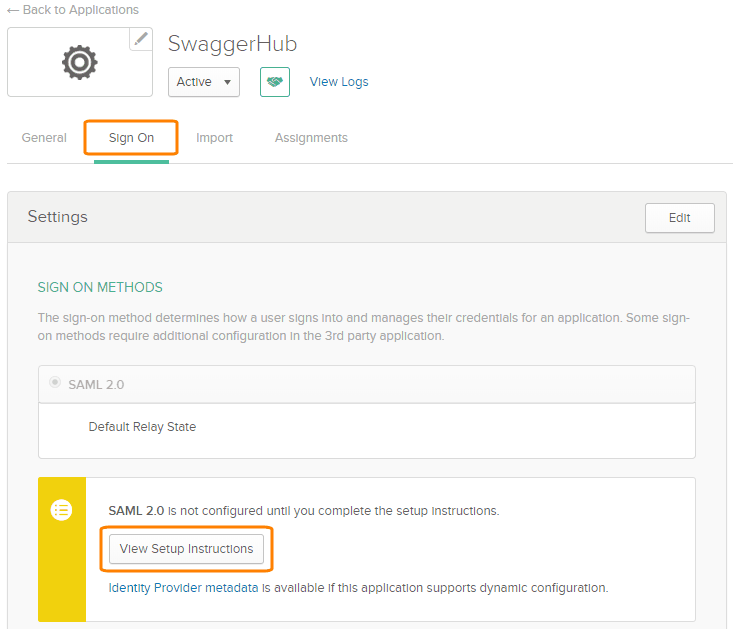 Okta is a SAML identity provider (IdP) that can be used to authenticate with SwaggerHub On-Premise. Integrating SwaggerHub with Okta includes the following steps: