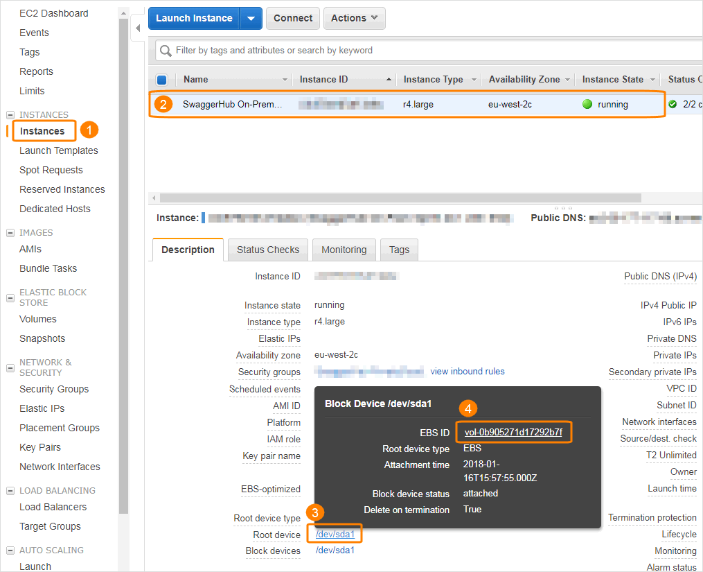 Click the EBS ID.