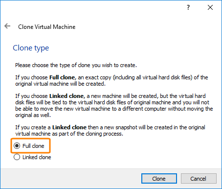 Select Full clone and click Clone.