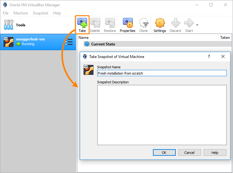 Give this snapshot a name and, optionally, a description and click OK.