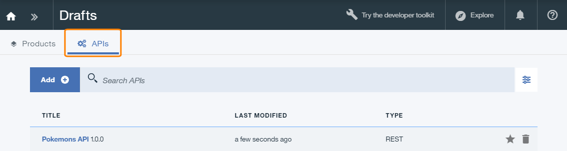 Click the API in the list to open it in IBM API Connect’s API designer.