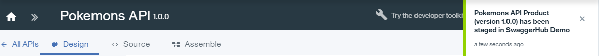 SwaggerHub will push your API definition to the specified API in API Connect, or create a new one. From now on, every time you save your API definition on SwaggerHub, the corresponding API definition in IBM API Connect will be updated. The name of the connected API is stored in the x-ibm-name