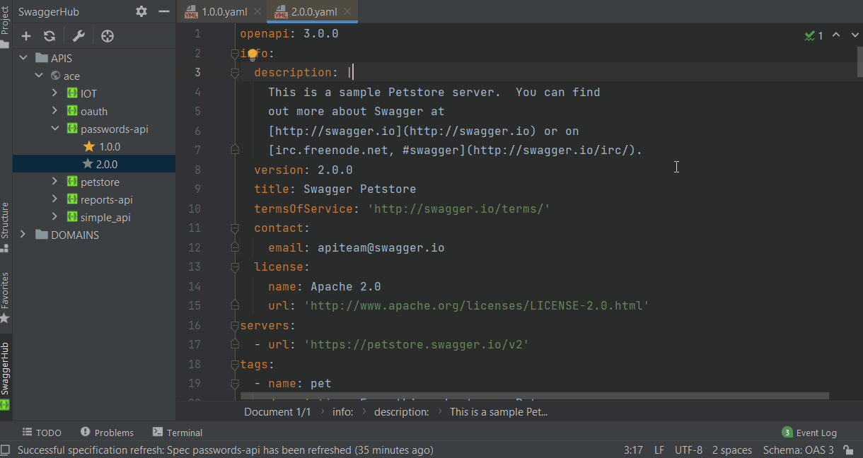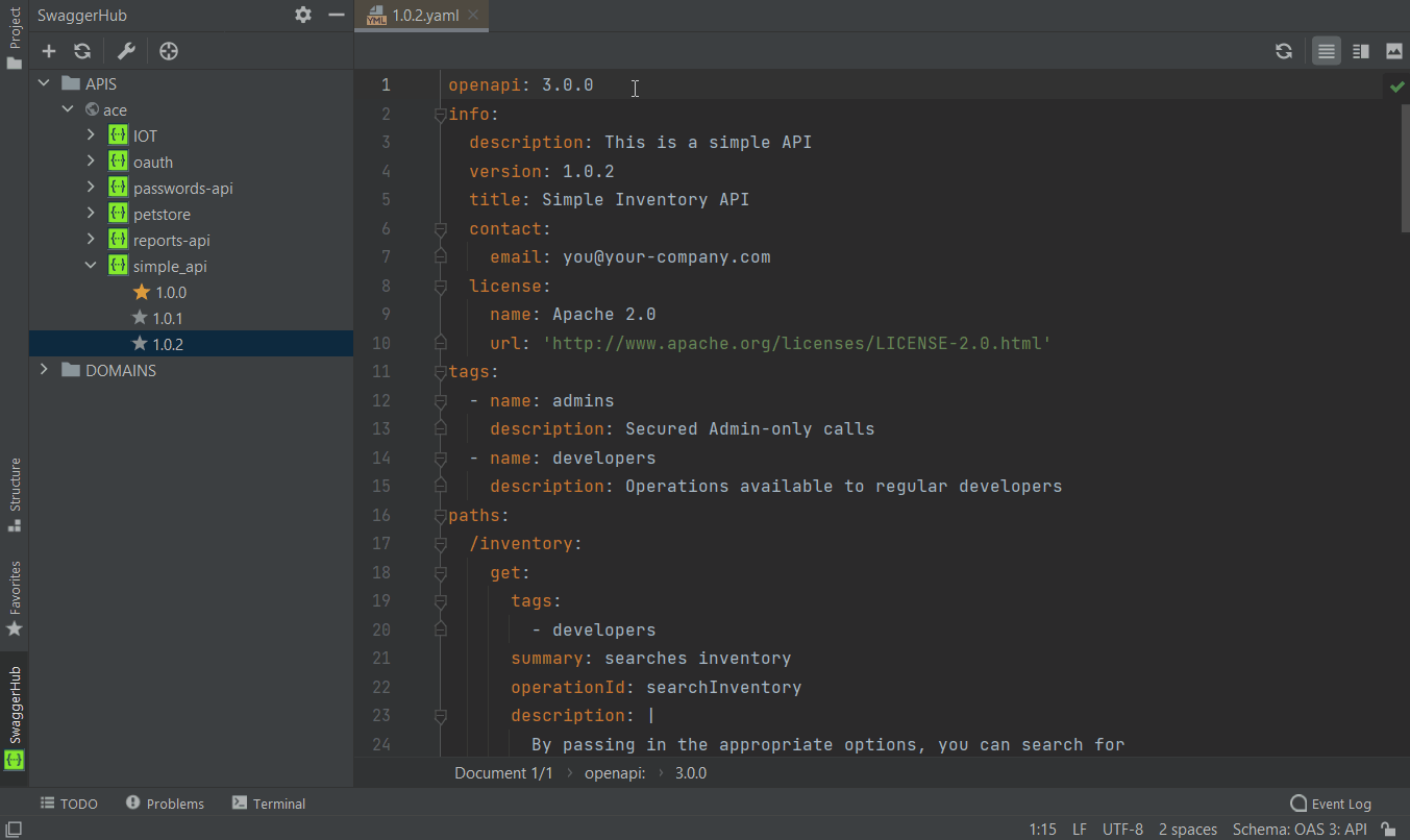SwaggerHub has a plugin for IntelliJ IDEA that lets you view and edit your OpenAPI definitions stored in SwaggerHub directly from the IDE. You can access your organization’s APIs and domains and sync the changes back to SwaggerHub.