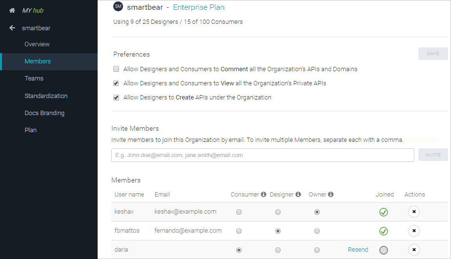 SwaggerHub collaborative features were built keeping in mind the needs of the modern team to allow iterative and cross-functional development of APIs. This is possible by defining organizations and teams within SwaggerHub.