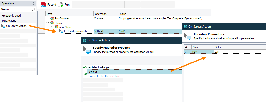1. Add the On-Screen Action operation to your test. TestComplete will open the Operation Parameters wizard.