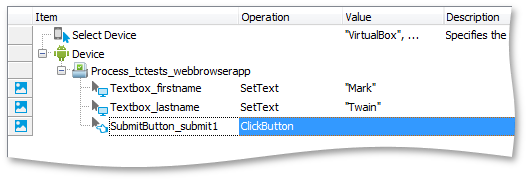 • During test recording, TestComplete captures images of the device screen and displays them in the Test Visualizer panel. These images help you understand what operations your test performs.