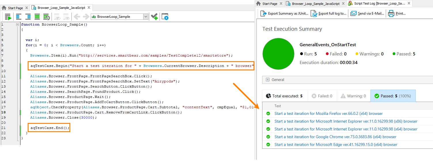 • If needed, use the new aqTestCase.Begin and aqTestCase.End methods to mark an arbitrary fragment of your script code as a test case: