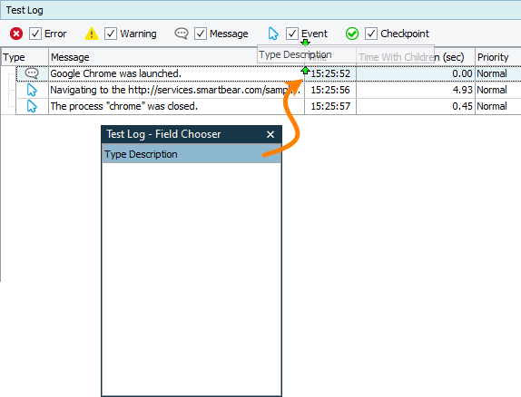 In TestComplete, to add or remove a column, right-click the column header and then click Field Chooser: