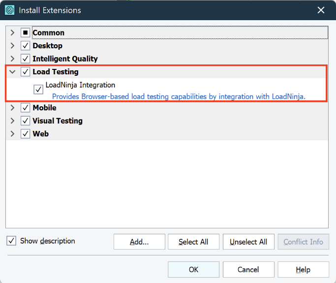 Note: Make sure the load testing extension is turned on in TestComplete in File -> Install Extensions -> Load Testing