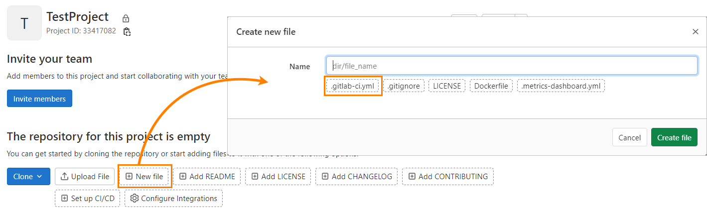 8. Create a YAML file for your GitLab project. This file will contain a script that launches TestComplete projects from GitLab.