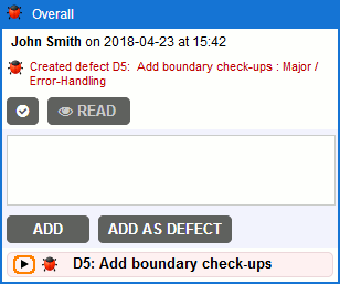 Note: The format and functionality of defects depend on the type of the reviewed material. You can read about various types of defects here: Types of Review Comments and Defects.