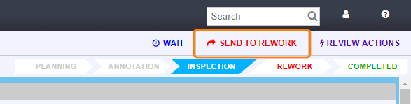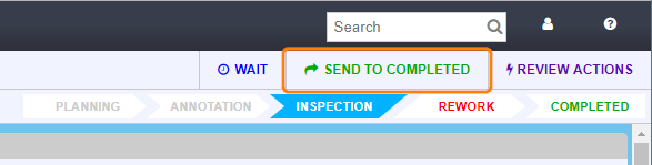 Depending on the presence of open defects, either the Send to Rework or Send to Completed button will be available in the header of the Review Screen.