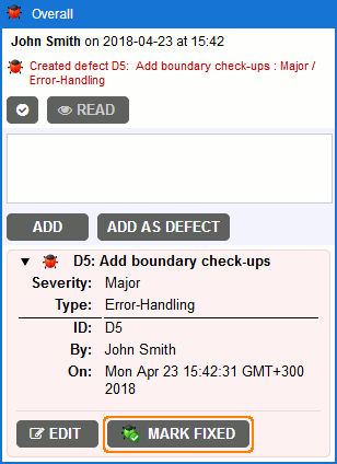 To mark a defect as fixed: