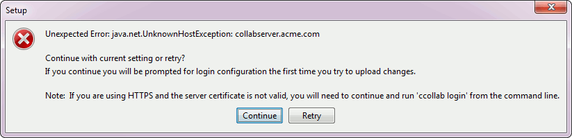 If you select Retry, you can supply different configuration information and try again. Otherwise, if you select Continue, the installation will continue but you will still need to set up your configuration.