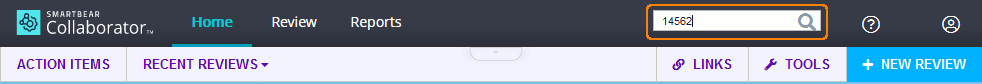Enter the Review ID number into the search box on the Home page and select Enter: