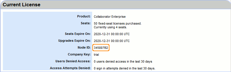 • Each license key is linked to the node ID of your Collaborator server, and gets carried over during server migration. Therefore, a new license key is not needed when migrating the server.