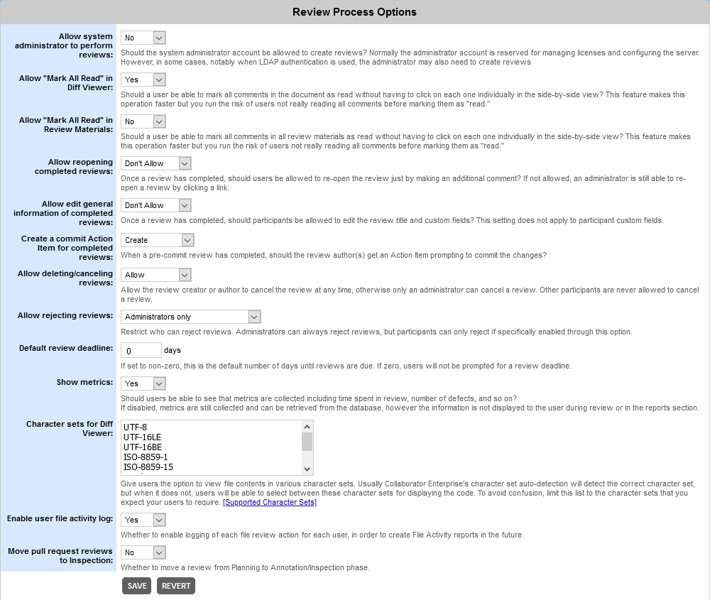 Allow reopening completed reviews Defines whether the participants are allowed to reopen the review by making additional comments once a review has been completed.