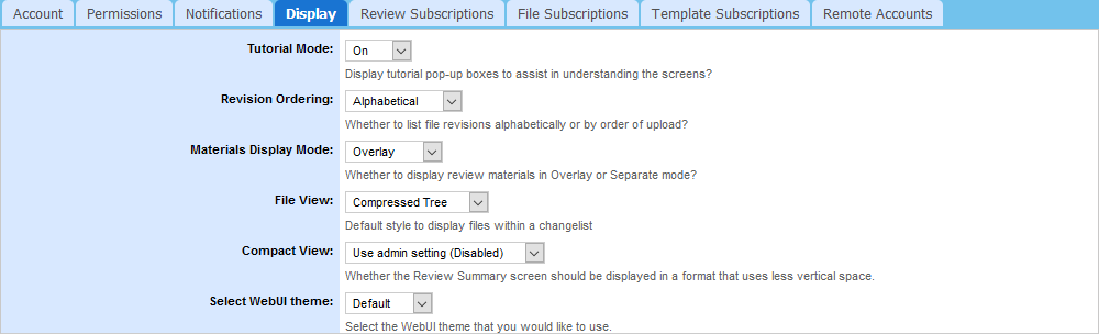 Template Subscriptions allow you to automatically subscribe and be included in reviews having a particular template. Select the name of a template you would like to subscribe to in the Review Template field and specify your desired role type (Reviewer, Observer, or Moderator) in the My Role field.