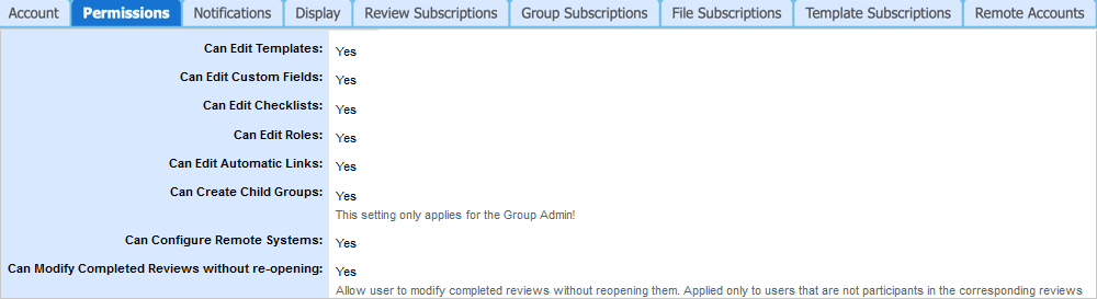 Controls whether you have permissions to modify review details after the review is closed. If enabled, you can modify general review information and add comments in the Chat section of closed reviews even when you are not participant of that review. Typically, you are not able to change this field, unless you are an administrator. |