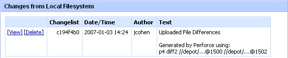 After you upload diffs to the server you will see the "changelist" appear similar to this: