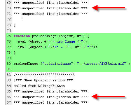 You can see the "*** unspecified line placeholder ***" text where the diff skipped over lines.