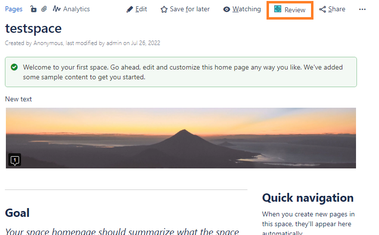 - Confluence document is displayed in the Collaborator as Word file, to learn how to review such type of file, see Reviewing Word Processing Documents.