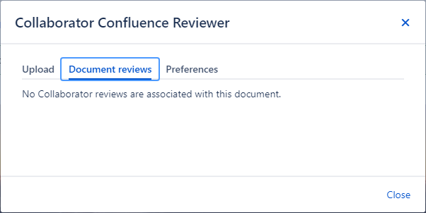 To check previous created Collaborator reviews for the current Confluence document open Confluence plugin and go to the Documents tab. There are two options when user can see list of the reviews: in the Preferences tab user is logged in and/or Show reviews to everyone option is enabled in the Space configuration.