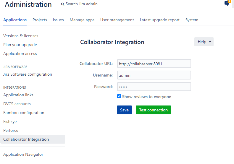 Now the integration between Collaborator and JIRA is configured and running.