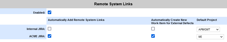 4. In the New Remote System Configuration section, select JIRA and click Create. This will display the configuration settings.