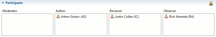 Unless the review is in the Planning stage, the Participants section will be in read-only mode. To add or remove participants or change their roles, click the Edit button. The Participants section will look like this: