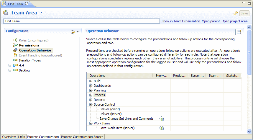 3. Select Operation Behavior from the tree on the left, then choose Work Items > Save Work Item (server) on the right, and add the follow-up Upload changes from work item to it: