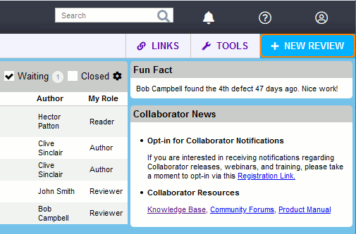 The next step in creating a review is to invite people to the review, and give each of them a role to play.