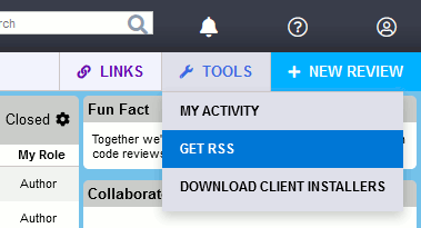 Notifications inform you about changes in review statuses, activities of other participants and when your login name was mentioned in some review. Additionally, in-app notifications inform users with administrator privileges when new repositories have been added in tracked remote servers.