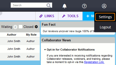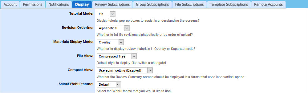 Template Subscriptions allow you to automatically subscribe and be included in reviews having a particular template. Select the name of a template you would like to subscribe to in the Review Template field and specify your desired role type (Reviewer, Observer, or Moderator) in the My Role field.