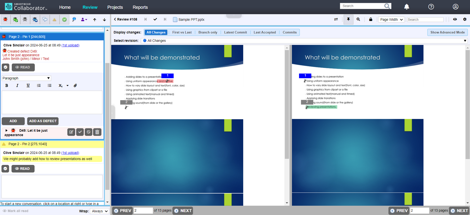 Note: Reviewing presentations is only supported in Collaborator Enterprise. For a complete list of differences between Collaborator editions, see the comparison page.
