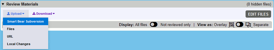 2. Select one of the buttons below the list. The buttons are used to upload materials to a review. Different buttons are available for different SCM systems (See Main Screen for details).
