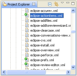 A green check-mark is displayed on files in your workspace which are currently under review. This decoration is updated whenever your Action Items refresh. You can disable this decoration using the standard Eclipse preferences page under General > Appearance > Label Decorations > Collaborator.