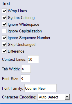 Diff Viewer includes a number of configuration and display options that may change depending on the specific type of file that is being reviewed.