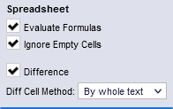 Specifies how to calculate and highlight differences in cell content. Possible values are By whole text and By words. Each of the methods is described in the Cell content difference section of Reviewing spreadsheets. |