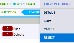 Clicking the Reject button invokes a dialog where you can specify reject reason and then moves the review to the Rejected phase. Rejected review cannot be reactivated even by administrator.
