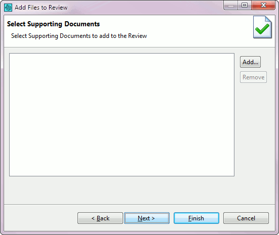 On the Select Supporting Documents screen, you can click Add and select supporting files you want to add to the review. If you don't want to add any, just click Next.