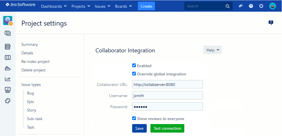 Now you need to configure your JIRA projects to display information about Collaborator reviews using the new plug-in. Collaborator JIRA plug-in provides flexible setup: