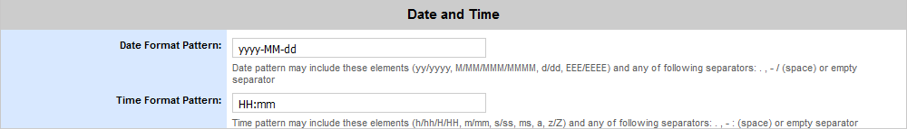 Time Format Pattern |