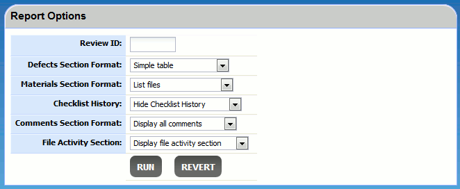 Specify the desired options for the report. To reset the report options and filters, press Revert button.