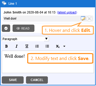 - Mouse-over the specific comment you would like to modify and click Edit.