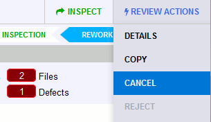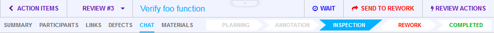 If there are no defects or all defects have been marked external, fixed or rejected, the review moves to the Completed phase.