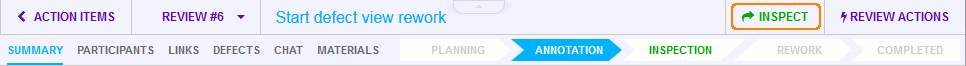 Using the Annotate and Inspect buttons on the review header toolbar, you can save your current information and move the review to another phase.