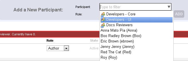 Review Pools allow an Author to select a Group as a participant, for a given Role, in a review. Groups which have been configured for use as Review Pools will be displayed in the New Participant dropdown on the Review Screen.